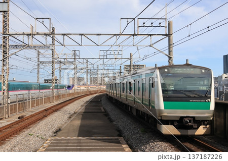朝ラッシュの新宿駅を発着する埼京線E233系電車