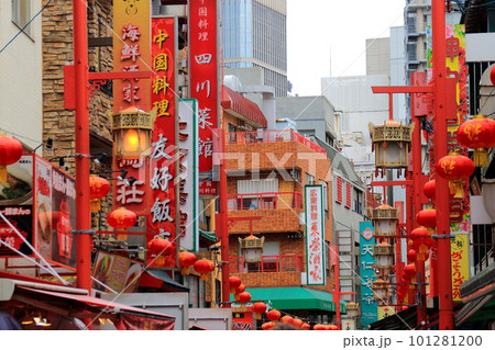 春節祭の神戸南京街 南京広場から南京南路の海栄門を臨む風景 神戸市中央区
