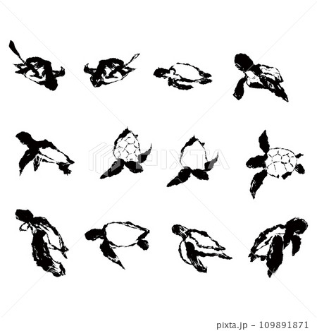 亀の墨絵風のイラスト素材のセット ベクター