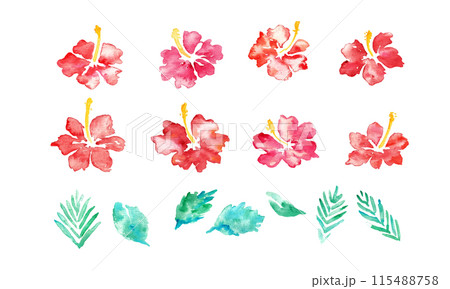 水彩画。水彩タッチのハイビスカスベクターフレーム。南国風ハイビスカスの背景。