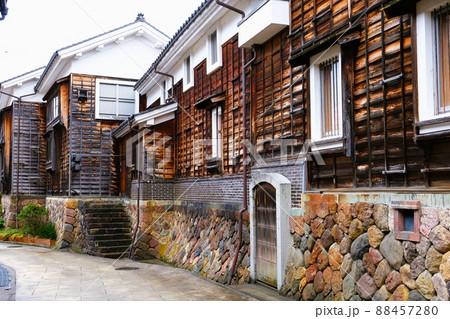 北海道江差町いにしえ街道の和風の蔵の風景を撮影