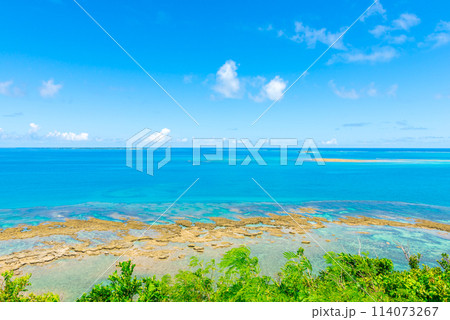 ニライカナイ橋 沖縄 観光地 展望台 絶景 風景 コピースペース 海 エメラルドグリーン 青空