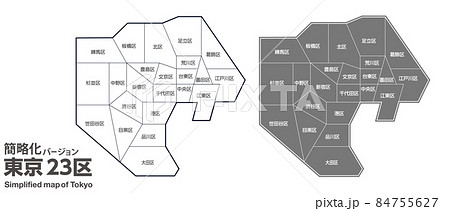 東京都の地図のイラストレーション。23区26市3町1村。各区市町村ごとバラバラになります。