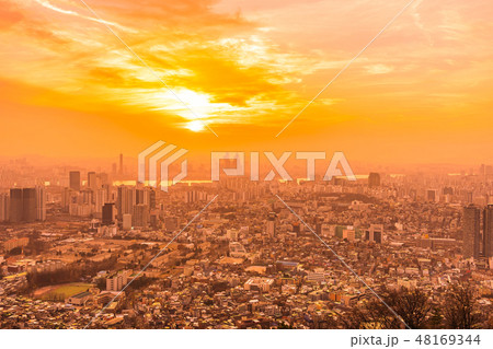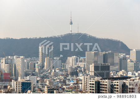 Cityscape of Seoul capital of South Korea with Namsan Tower