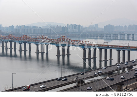 Seoul South Korea capital urban areal cityscape on a smoggy day