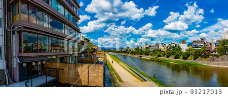 京都の夏の風物詩 鴨川納涼床 迫力ある青空の下 パノラマビュー