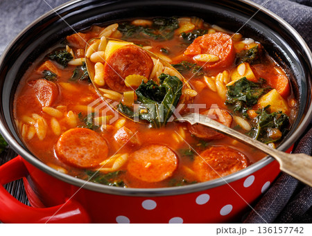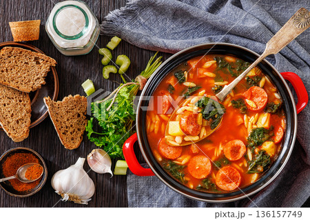 Swamp Soup with Sausage Kale White Bean and Orzo