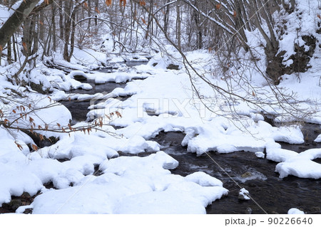 寒さ厳しい真冬の渓流(南相木川 長野県 南相木村)