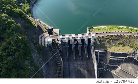 丹沢湖・三保ダムの堤体(空撮) , 神奈川県南足柄郡山北町,日本