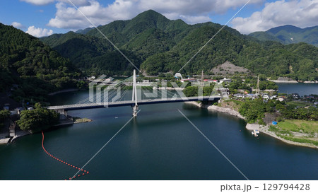丹沢湖と永歳橋(空撮) , 神奈川県南足柄郡山北町,日本