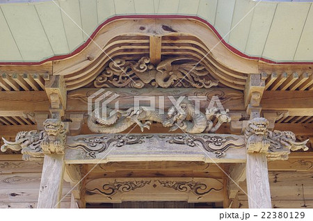 信州 安曇野の古刹 泉福寺 木曽義仲の創建 本堂向拝彫刻 立川流の小口直四郎の彫刻