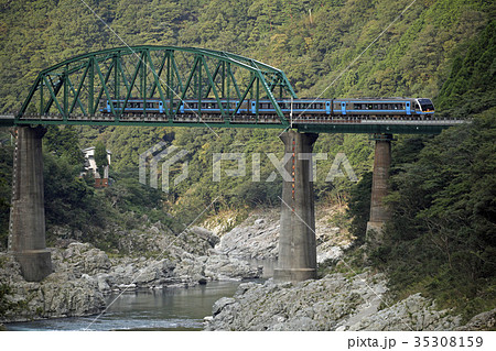 小歩危峡を行く特急「南風」(JR四国 2700系)