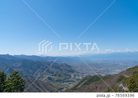 甲州高尾山の展望台から見た景色(遠景に南アルプス)