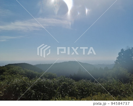 高尾山 初夏の登山道 稲荷山コース あずま屋から東京都心方面の眺望