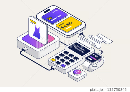 3D Isometric Flat Illustration of Contactless Payment. Item 3