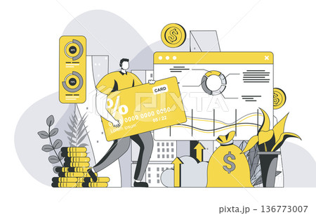 Loan issuance concept. Financial transaction approval and interest rate management. Money lending, loan agreements, and credit systems in banking processes. Vector illustration.
