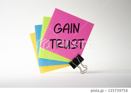 Gain trust symbol. Gain trust on sticky note. Beautiful white background. Business and Gain trust concept. Copy space.