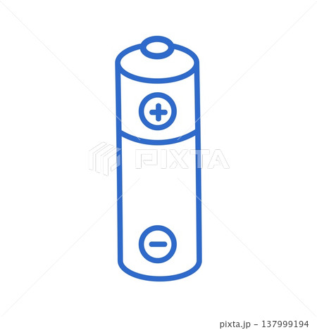 A simple blue line battery icon. Energy and power symbol with plus and minus sings.