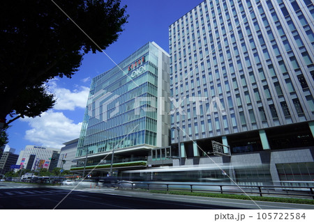 真夏のJR博多駅前・KITTE博多ビルと行き交う車