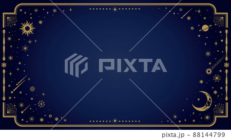 太陽と月と星が描かれた神秘的な宇宙の風景 フレーム