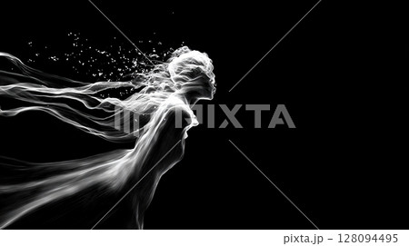 抽象的な水彩画, 深い青と薄いグレーのグラデーション