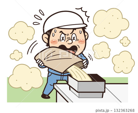 ダンボール等の落下物や飛来落下に驚いている工場・現場の作業員イラスト|不安全行動・不安全状態・リスク