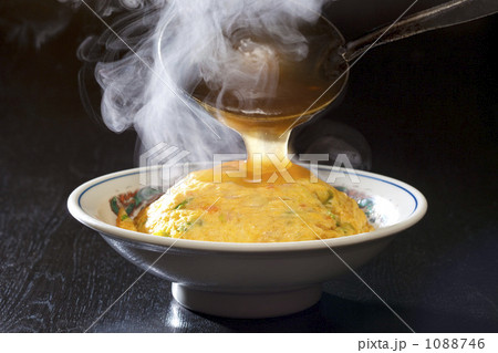 餡かけ中華風オムライス、天津飯を白背景で撮影
