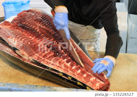 マグロ職人に捌かれる生の本マグロ