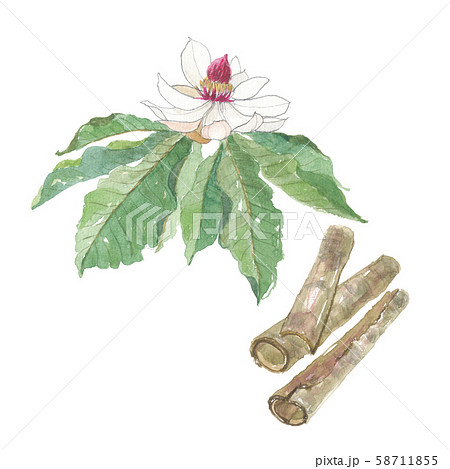 漢方生薬「厚朴(コウボク)」手描き水彩風イラスト