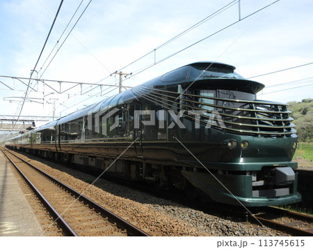 厚東駅に停車するトワイライトエクスプレス瑞風