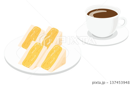 厚焼き玉子のサンドイッチとコーヒーのセットイラスト