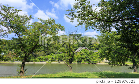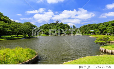 新緑の眩しい神奈川県横浜市中区本牧の景勝地の三渓園