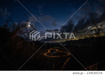 三重県 奈良県 曽爾高原 ライトアップされたお亀池