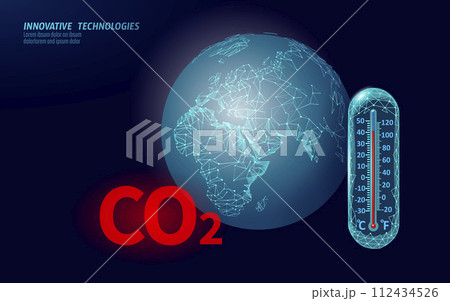 Carbon dioxide CO2 ecology problem eco concept. Renewable organic gas 3D render. Science biofuel chemistry biotechnology polygonal climatic greenhouse effect technology vector illustration