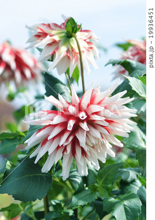 調布市の植物園に咲く白と赤のダリア(恋金魚)