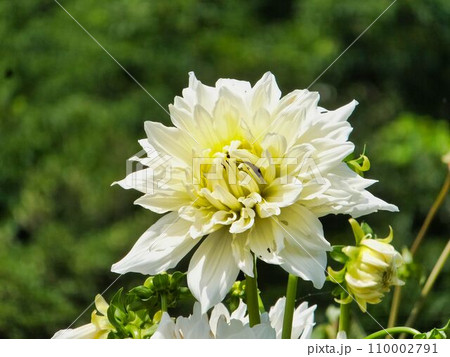 調布市の植物園に咲く白いダリア(バニラベイビー)