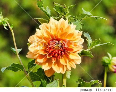 調布市の植物園に咲くオレンジ色のダリア(マーマレード)