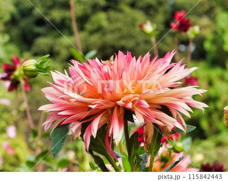 調布市の植物園に咲くピンクのダリア(シンドバット)