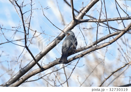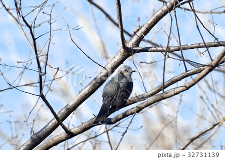 東京三鷹の野鳥 仙川公園のサクラの木にとまるヒヨドリ