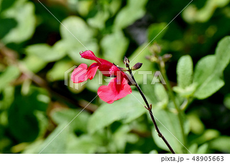 三鷹の花 植物 三鷹中原に咲く赤白複色のサルビアミクロフィラ