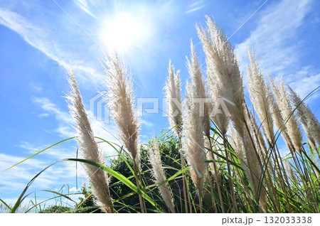 秋風とパンパスグラス(イネ科シロガネヨシ属)