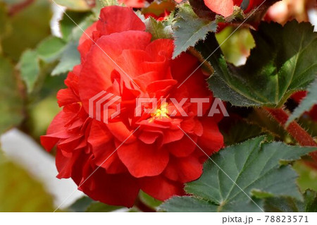 調布市深大寺元町の植物園に咲く赤いベゴニアの花