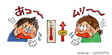 暑がる子供と温度計上昇