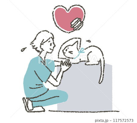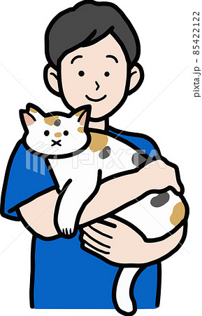 さくら猫(耳カットをした猫)を抱っこする獣医師のイラスト素材