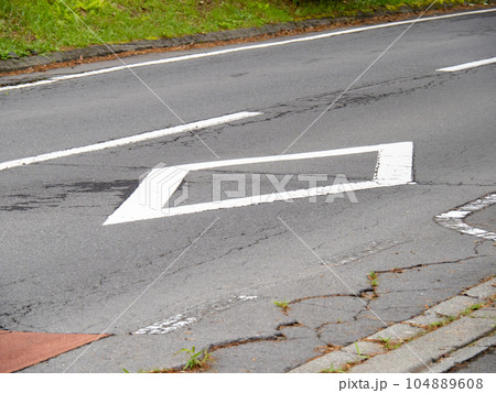 道路、路面標示 舗装したばかりのチョークの補助線跡が残っている路面標示