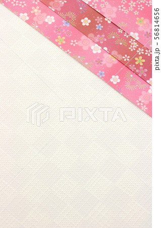 白背景にピンクの桜柄の和紙と水引の背景素材