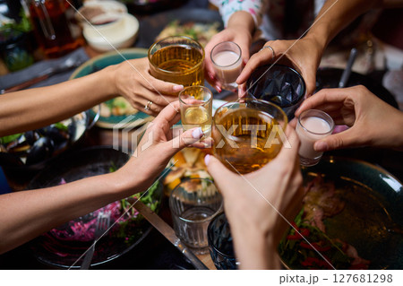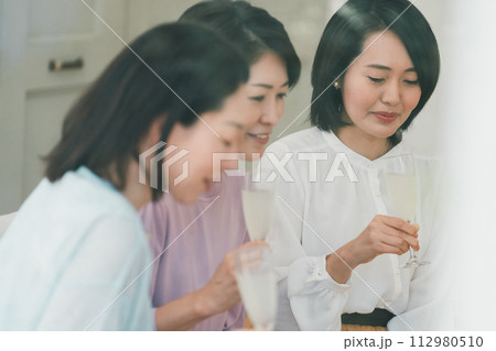 女子会イメージ シャンパングラスを持って談笑する若い女性たち