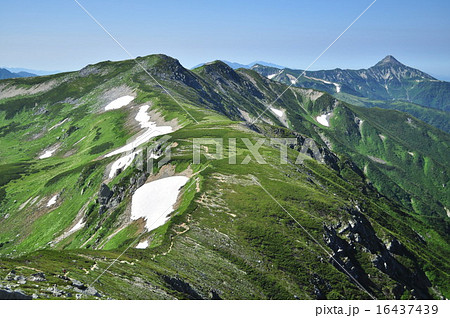 北アルプス笠ヶ岳への道 縦走路から雲ノ平、裏銀座の山々を望む 双六小屋遠景