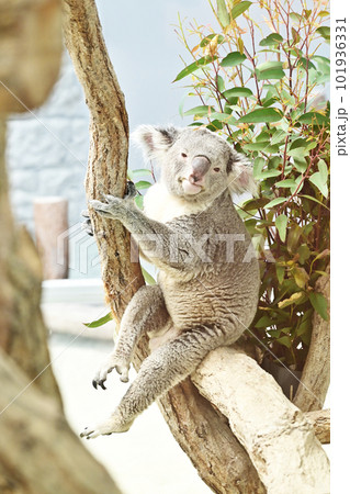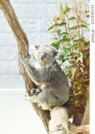 木に登っているコアラ かわいい動物 コアラとユーカリの葉