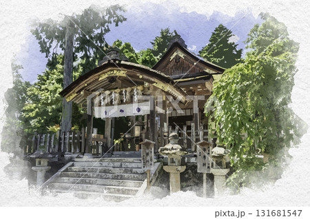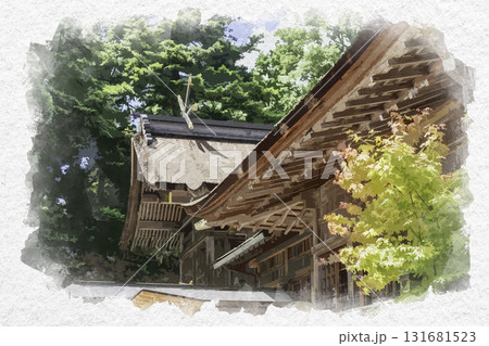 水彩画風 宇倍神社 拝殿 鳥取県鳥取市